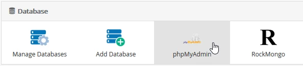 - Once logged into the Webuzo admin panel, look for the "Database" section in the displayed window and select "phpMyAdmin" from there