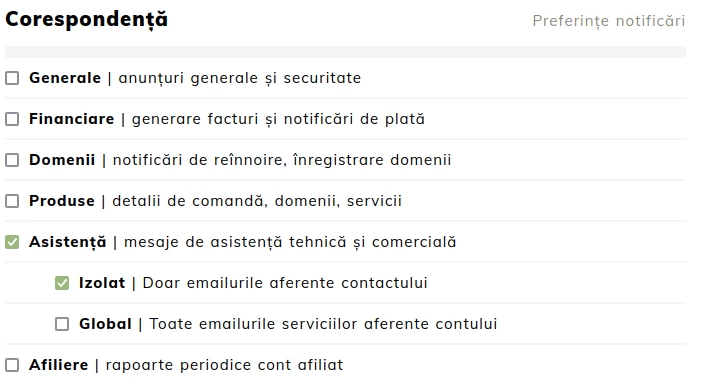Important! For sub-contacts to receive technical and commercial notifications (correspondence tickets), in the Correspondence section, the Support field must be checked, which will implicitly open two additional checkboxes: