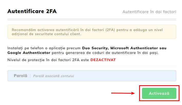 Activating secure authentication (two-factor authentication) on the Hostico customer account (Two Factor Authentication - 2FA)