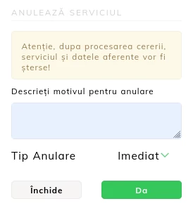 - In the displayed window, a reason for the desired service termination will need to be provided. This step is important for us, as it gives us the opportunity to collect feedback, and based on this, we can improve the services offered.