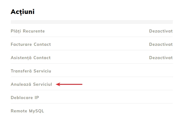 - The next step is to access the Actions panel on the right side of the page. From here, click on the Cancel Service button.