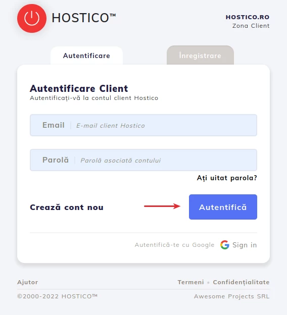 Note: If you do not remember the password needed to authenticate in your account, access the tutorial Client account password reset Hostico to view the necessary steps for password regeneration.