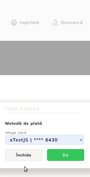 The opened page will display a box in which the main card details will be displayed automatically. If you wish to pay the invoice with another card, you can select one from the displayed list.